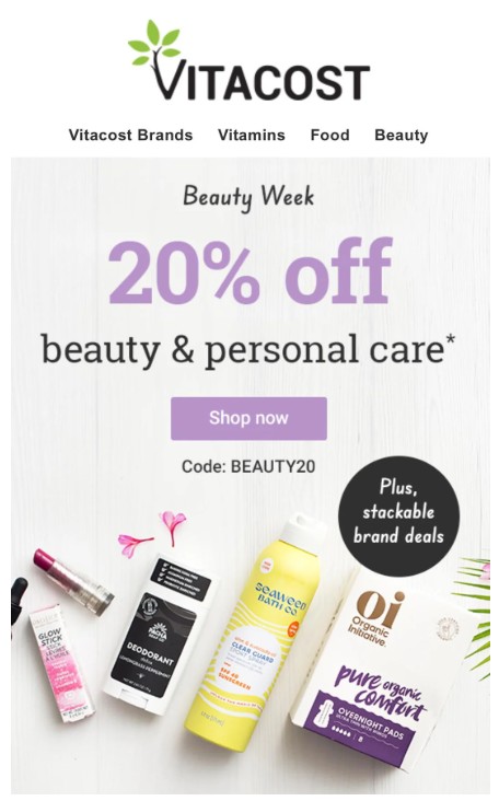 3. 20% Off Select Vitacost Brand Products (VE601M)